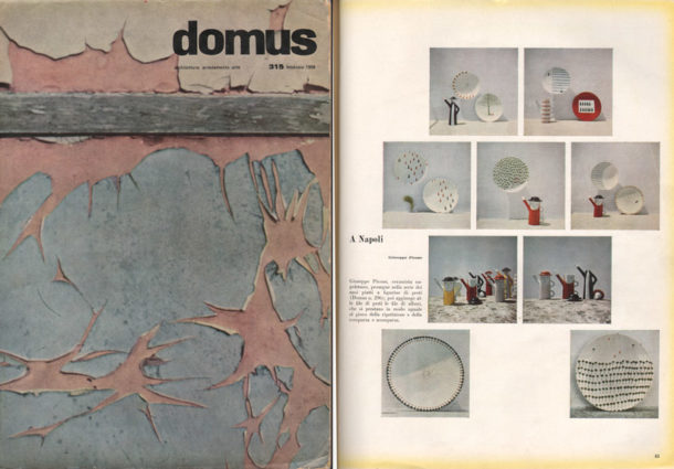 Giuseppe presenta i sui lavori alla redazione di domus che pubblicherà parecchie pagine con i suoi piatti.