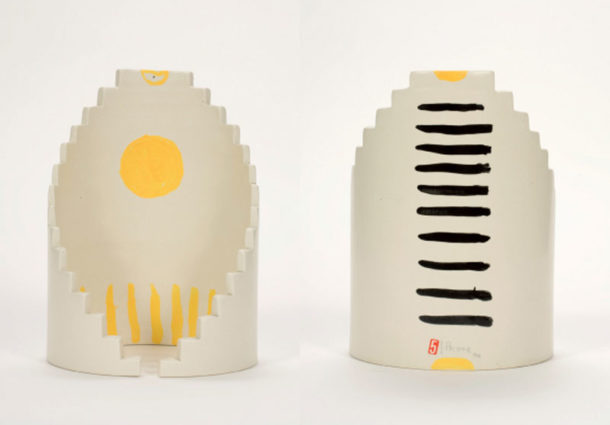 Nel 2000 produce una nuova serie di ceramiche, ‘oggetti ritrovati dai fiori’: vasi in cui ritorna la forma lineare del pretino, esposti a Roma, da Spaziosette.