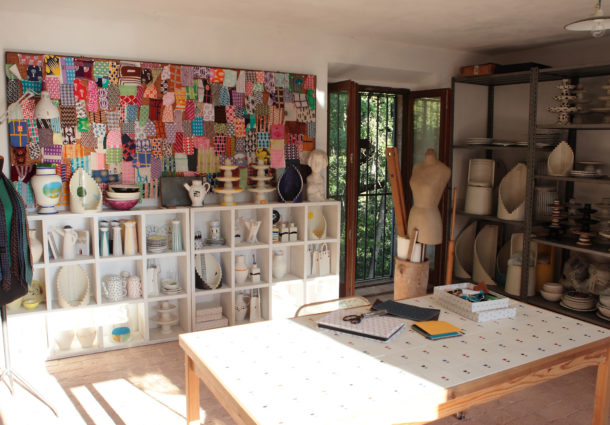 In questo luogo, che è per lui fonte d’ispirazione, ha dato libero sfogo alla sua amata ossessione. Su divani, cuscini, tende, quadri, piastrelle, piatti, tazze, tovaglie, asciugamani… ovunque, il suo pretino.